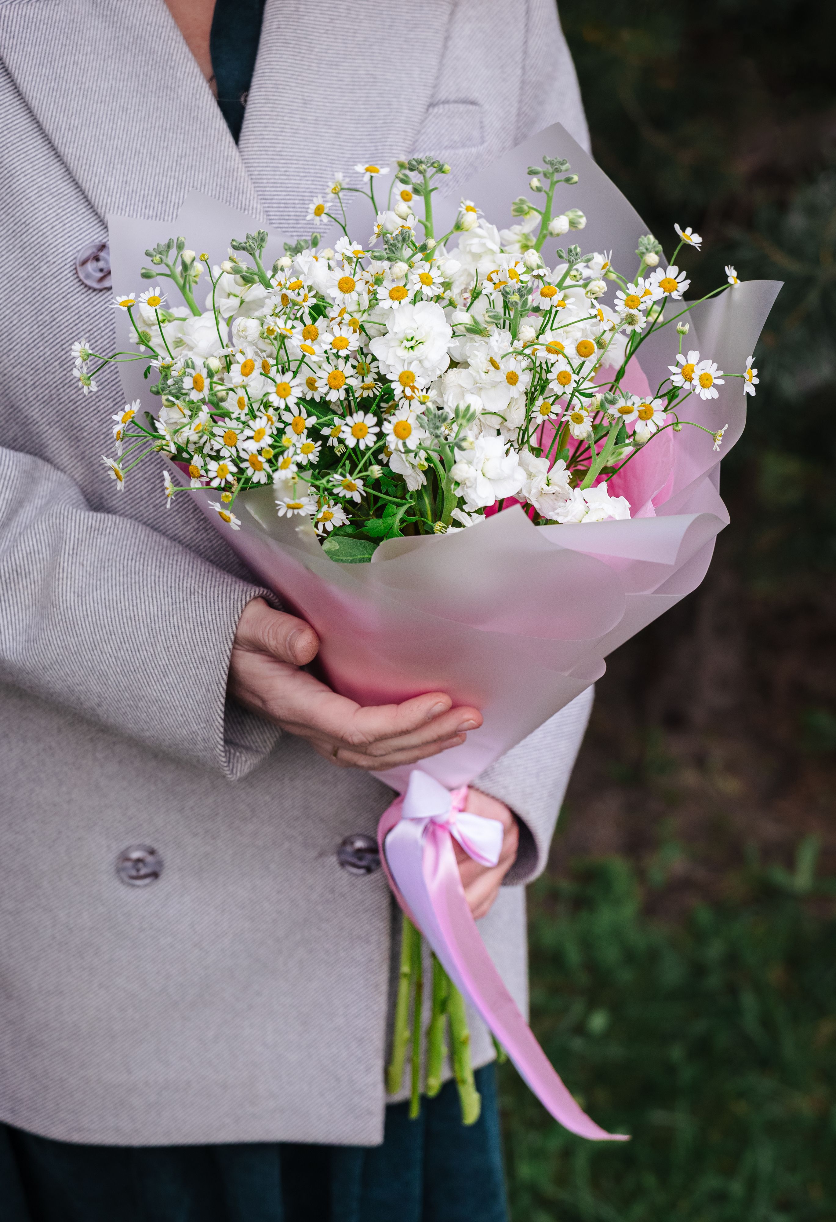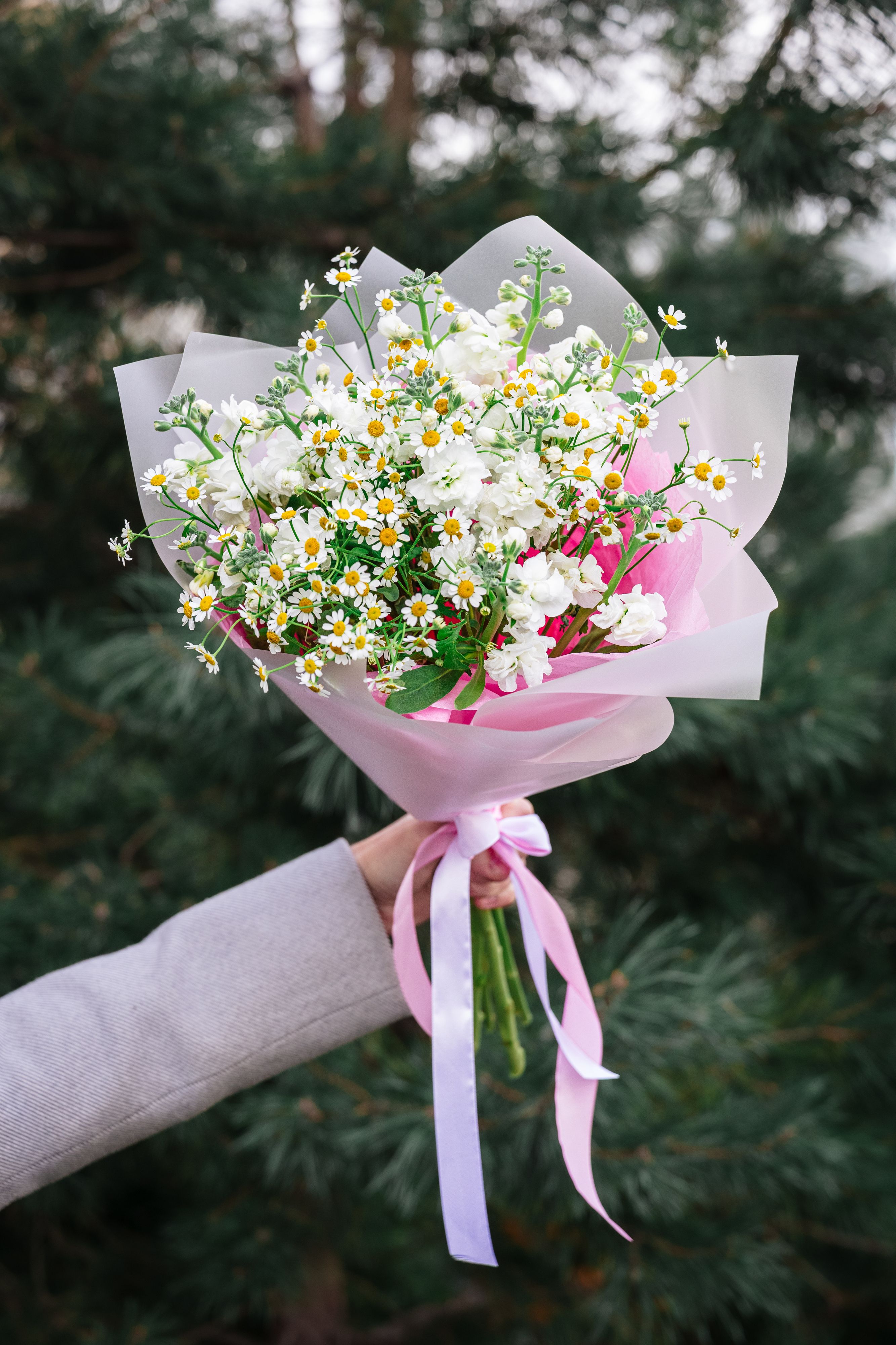 Цветочный магазин «ФламаМама» в Приморском районе Санкт-Петербурга предлагает авторские букеты из свежих цветов, собранные вручную нашими флористами. Мы тщательно подбираем каждое растение, чтобы композиции выглядели гармонично и соответствовали современным тенденциям флористики. Букет из матрикарии может быть оформлен как в классическом стиле — с лёгкой крафтовой упаковкой, так и в более дизайнерском варианте — с добавлением лент, декоративных элементов или других цветов, таких как розы, эустомы или гортензии.