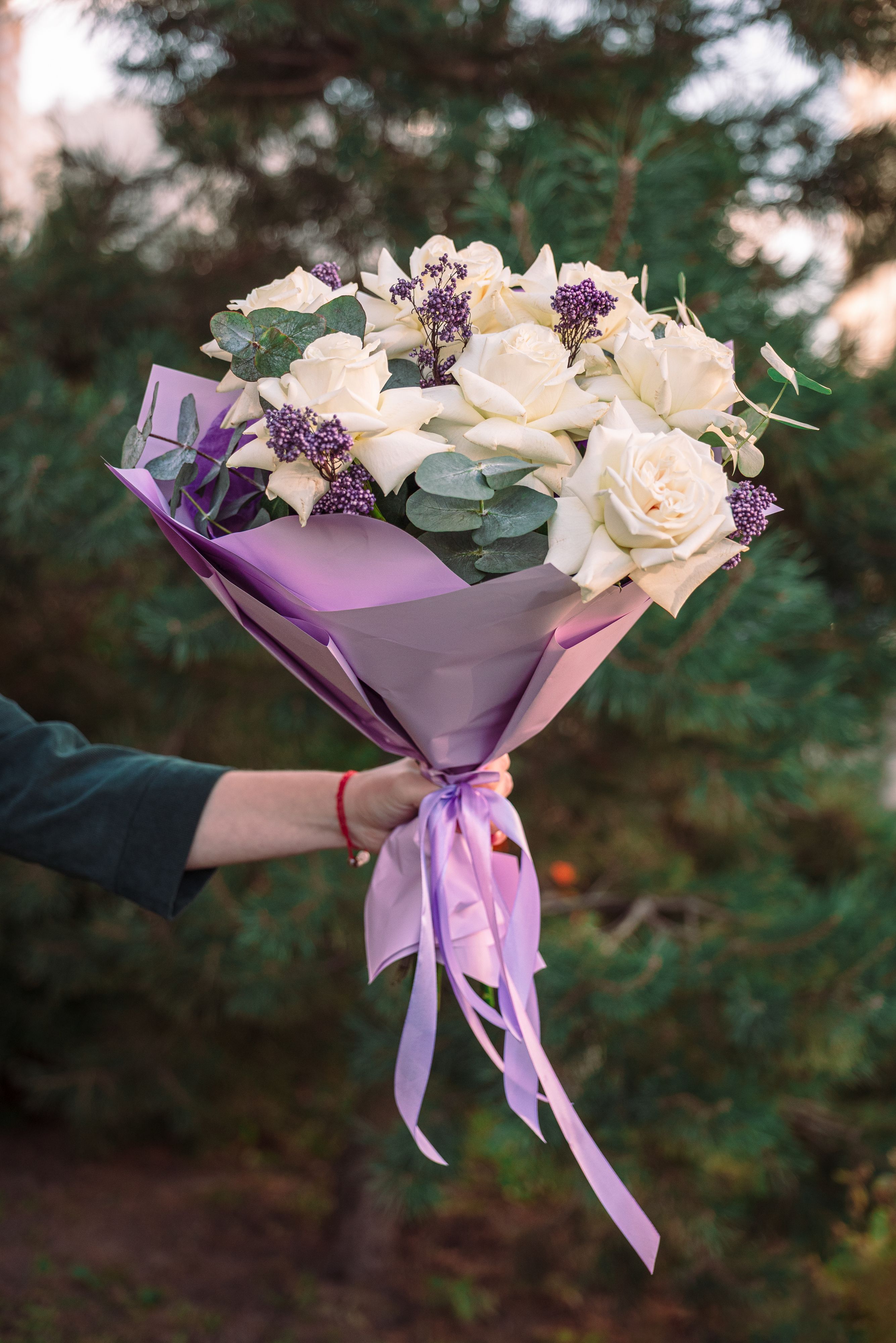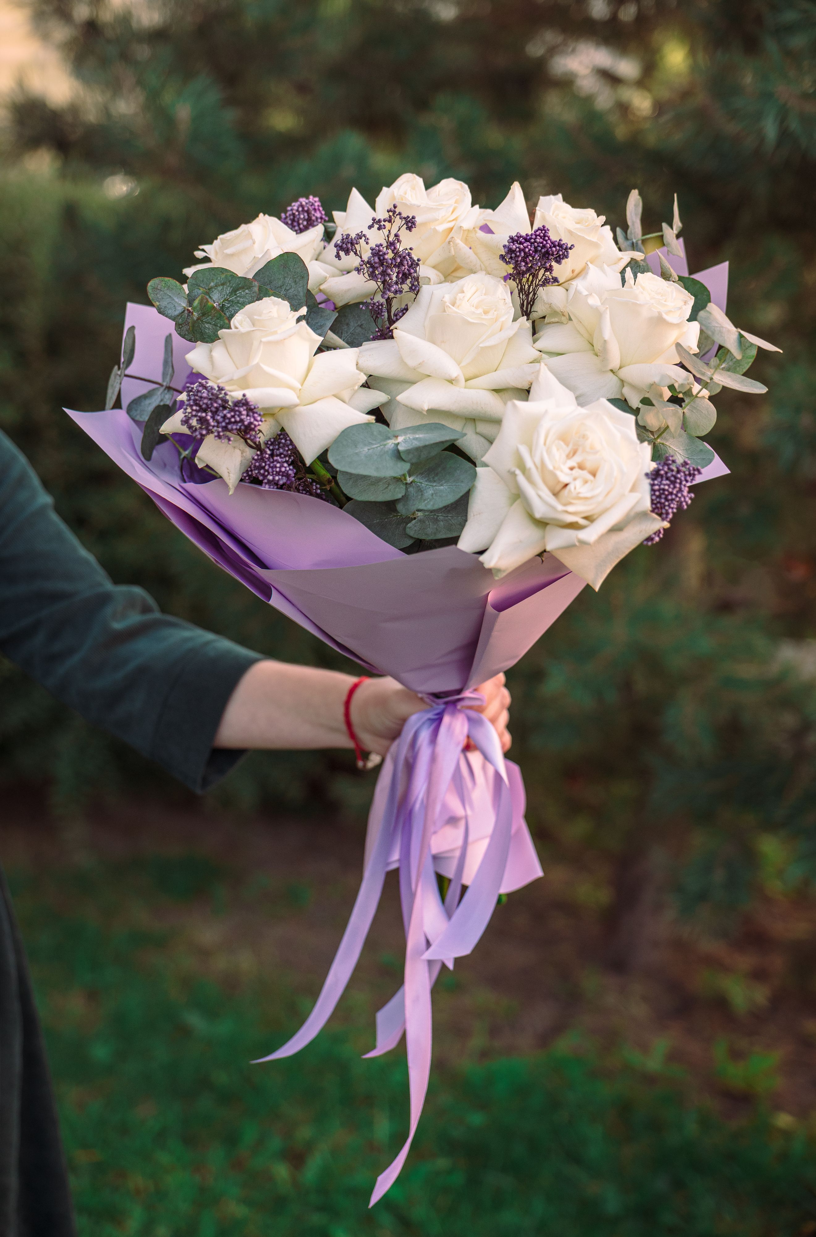 Розы Плая Бланка 7 шт, эвкалипт 3шт, сухоцвет. Любой букет мы может сделать под ваш запрос. Так же у нас есть доставка. Для уточнения вопросов свяжитесь удобным для вас способом.