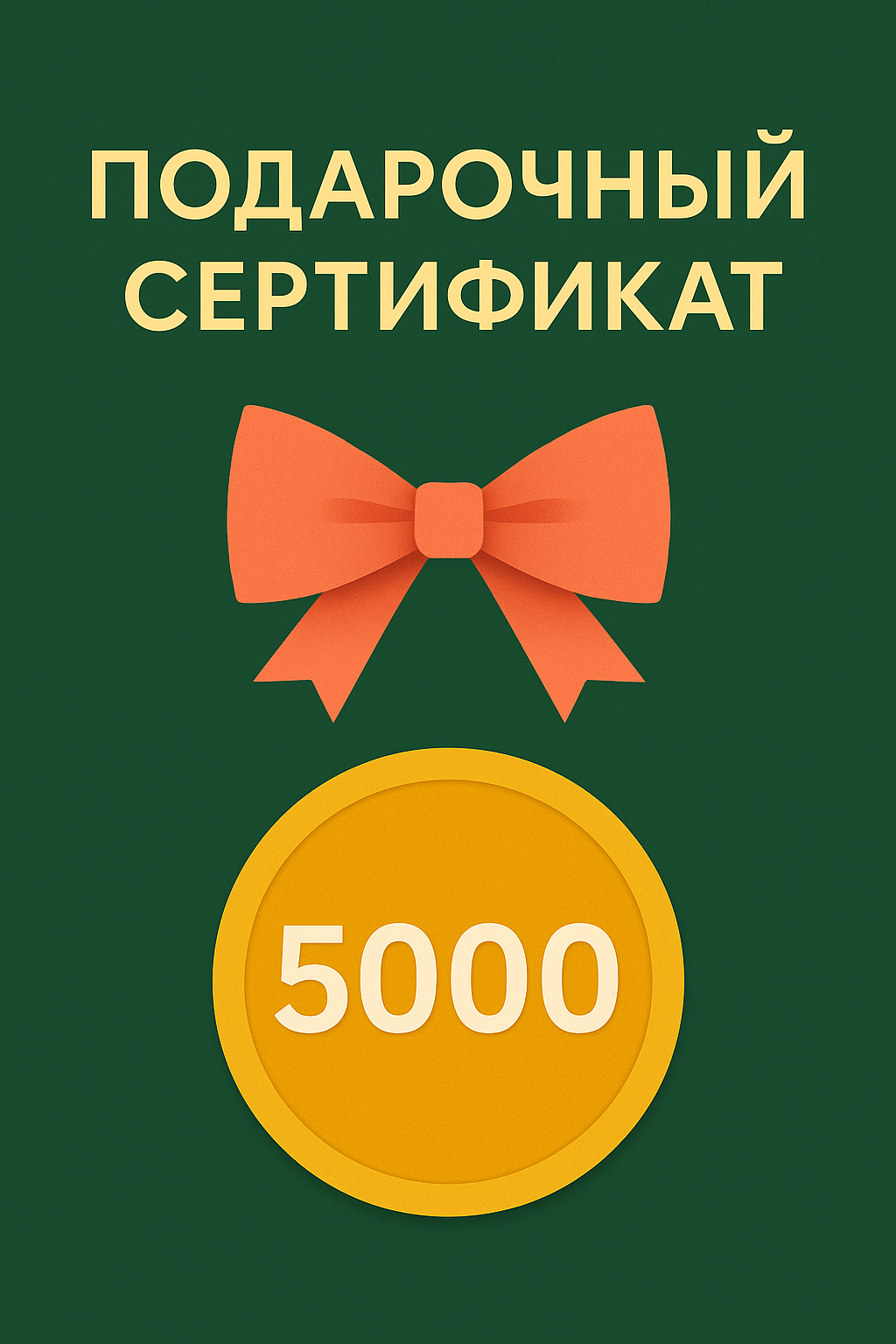 В наличии: 1 Сертификат на 5000р. 5 000 ₽ В корзину Купить в 1 клик Отзывы 0 Оставить отзыв Поделиться
